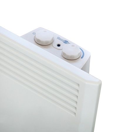 Прибор оборудован простым и надежным механическим термостатом с возможностью регулировки температуры и установки полной, либо «половинчатой» мощности.